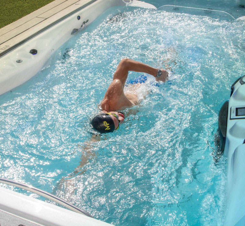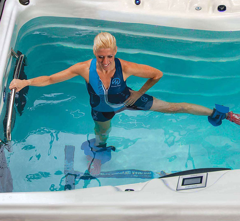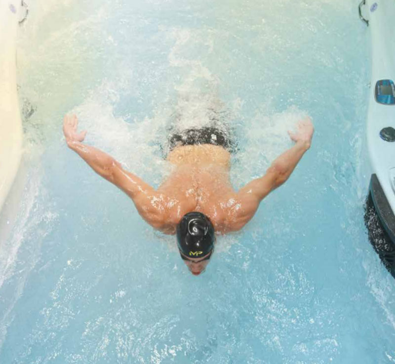 a Michael Phelps Signature Swim Spa allows for water to