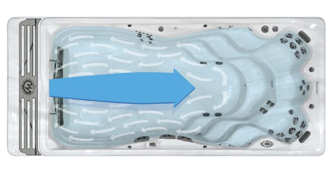 The patented Wave Propulsion Technology is designed to deliver a deep and wide current of pure water flow with virtually no turbulence compared to industry standard jetted swim spas.